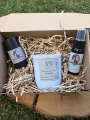 Our curated Gift Box for Him is the perfect treat for the modern man, featuring essentials for a little self-care. This set includes a nourishing beard oil, a natural deodorant, and a hand-poured candle. Choose from candle scents like:
